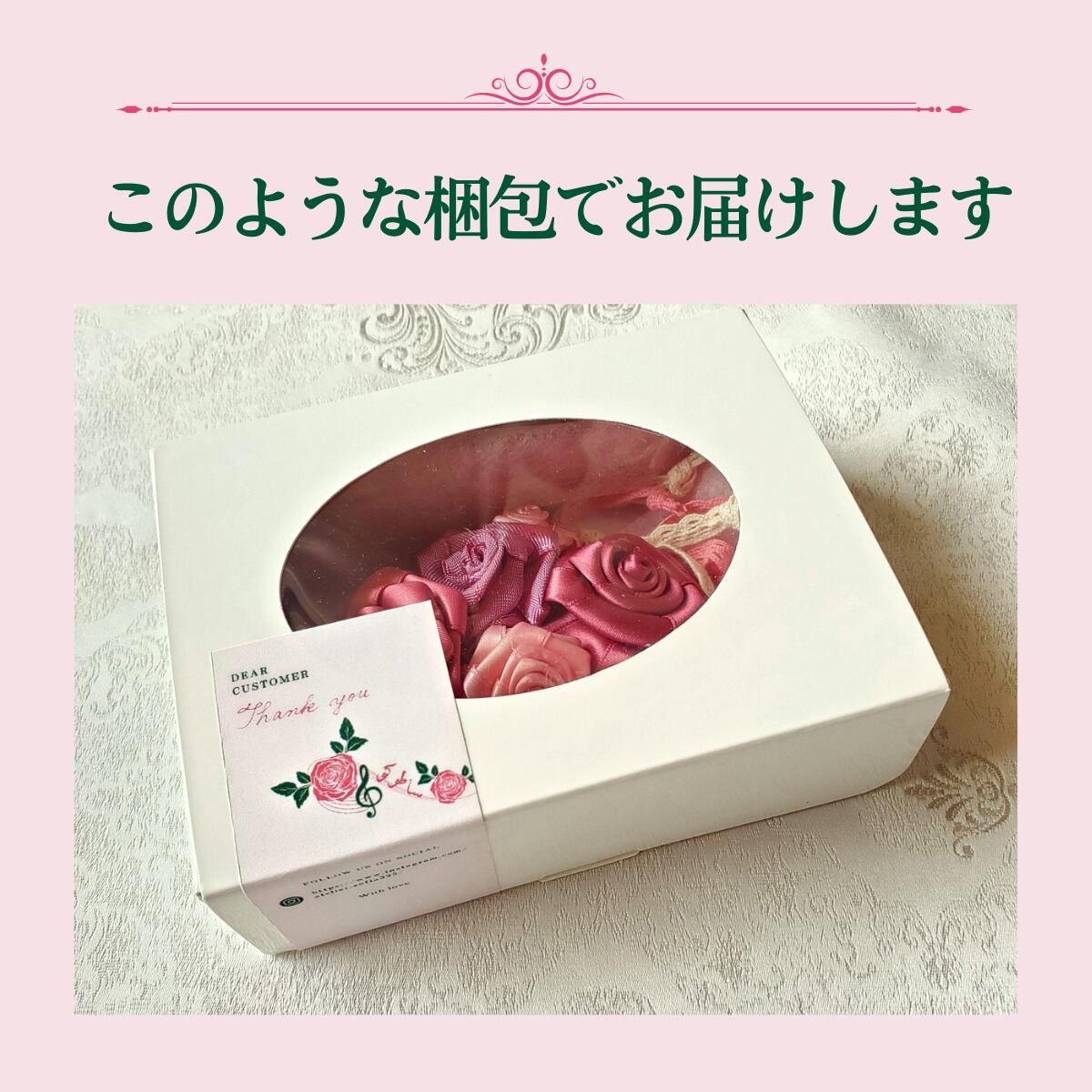 手作りなので、微妙なカーブや重なり具合・お花の開き方…など、同じ物はございません、唯一というのもお楽み下さいね。