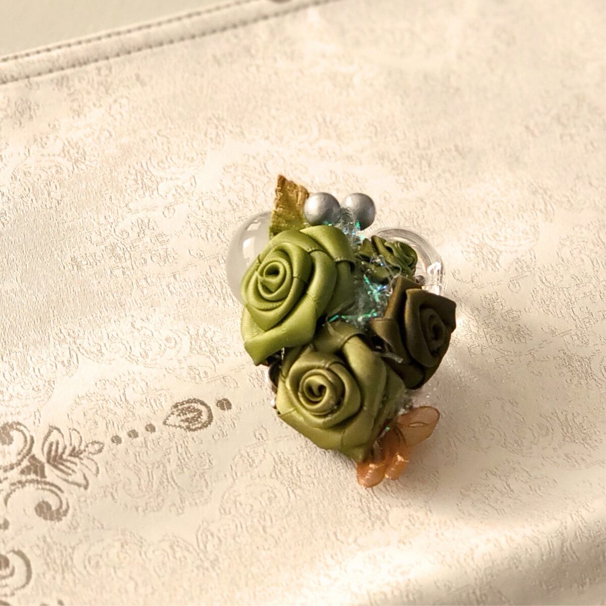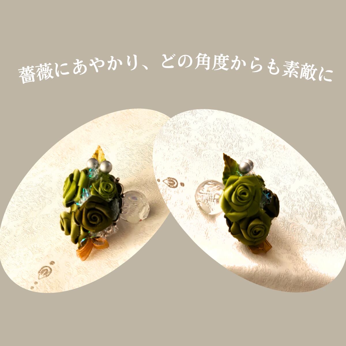 手作りなので、微妙なカーブや重なり具合・お花の開き方…など、同じ物はございません、唯一というのもお楽み下さいね。