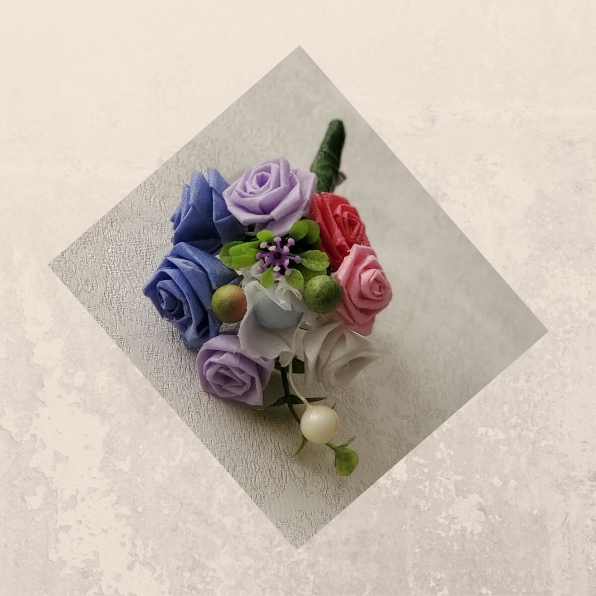 手作りなので、微妙なカーブや重なり具合・お花の開き方…など、同じ物はございません、唯一というのもお楽み下さいね。