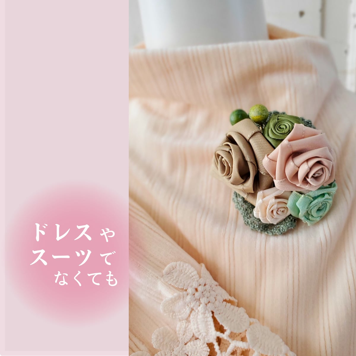 コサージュ ブローチ 薔薇 ローズリボン 巻きバラ プレゼント お出かけ 卒入学 結婚式 パーティ 誕生日 母の日 408