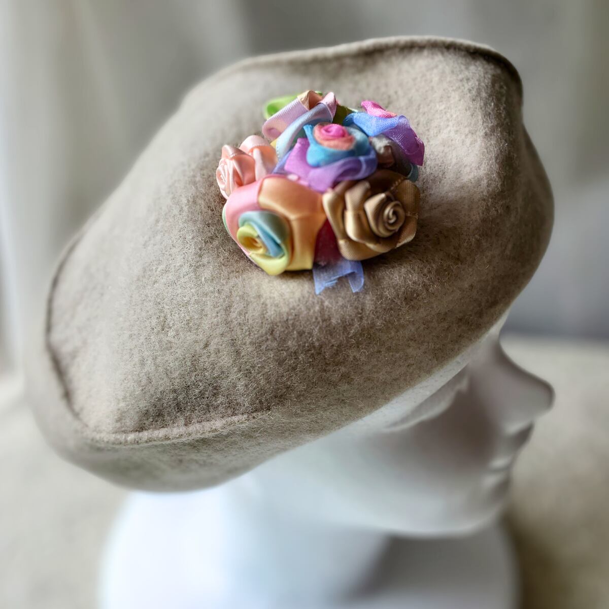 手作りなので、微妙なカーブや重なり具合・お花の開き方…など、同じ物はございません、唯一というのもお楽み下さいね。