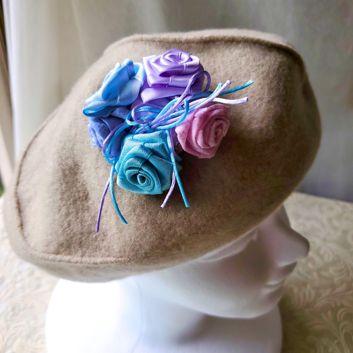 手作りなので、微妙なカーブや重なり具合・お花の開き方…など、同じ物はございません、唯一というのもお楽み下さいね。